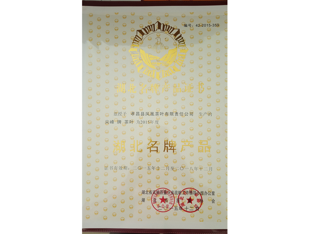 2011年榮獲“孝感市農(nóng)業(yè)產(chǎn)業(yè)化十強(qiáng)龍頭企業(yè)“稱(chēng)號(hào),2011年榮獲中國(guó)國(guó)際林業(yè)產(chǎn)業(yè)博覽會(huì)暨中國(guó)義烏國(guó)際森林產(chǎn)品博覽會(huì)金獎(jiǎng),2012年再次獲得“湖北省名牌產(chǎn)品”稱(chēng)號(hào),2013年農(nóng)業(yè)部主辦的綠色食品、有機(jī)食品博覽會(huì)榮獲優(yōu)秀產(chǎn)品獎(jiǎng)。2014年“周巷鳳凰茶”成功申請(qǐng)中國(guó)地理標(biāo)志產(chǎn)品,“尖峰”商標(biāo)再次榮獲“湖北省著名商標(biāo)”。